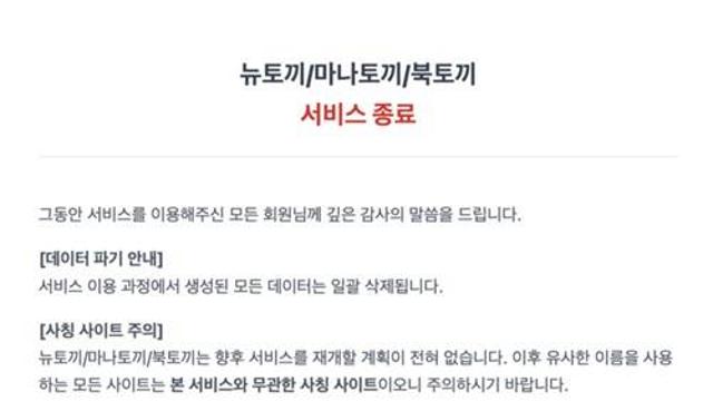 '뉴토끼' 운영진, 정부 긴급 차단 앞두고 불법 서비스 전격 폐쇄