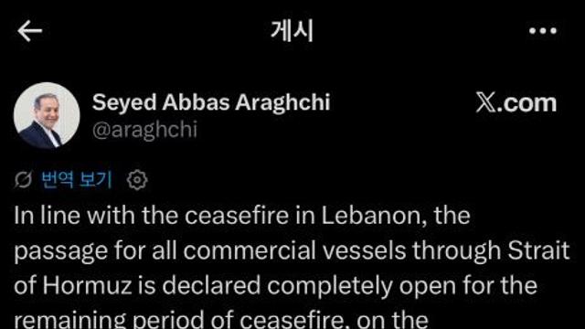 [사회] 이란 "휴전기간 상선에 호르무즈 완전 개방"…트럼프 "땡큐"(종합) 작성자 Mini's 등록일 2026-04-18 02:03:17.0 조회수 6 2026-04-18 사회~♡ 이란 "휴전기간 상선에 호르무즈 완전 개방"…트럼프 "땡큐"(종합)[속보] 이란 “레바논 휴전 동안 호르무즈 해협 완전 개방”무생채보다 3배는 맛있네요… 요즘은 무 대신 '이 채소' 썰어서 무쳐 먹습니다‘한국 정부 지원’ 비판한 이란 모델 입장 번복…“이해 부족했다”세미티에스, 임시주총서 스팩 합병 승인…6월 초 코스닥 입성이란 "휴전기간 상선에 호르무즈 해협 완전 개방"[속보]]이란 “레바논 휴전중 호르무즈 완전 개방”…트럼프 “땡큐”“건강해지라고 먹여”…생후 2개월에 떡국 먹인 친모, 결국 학대 혐의 송치 목록