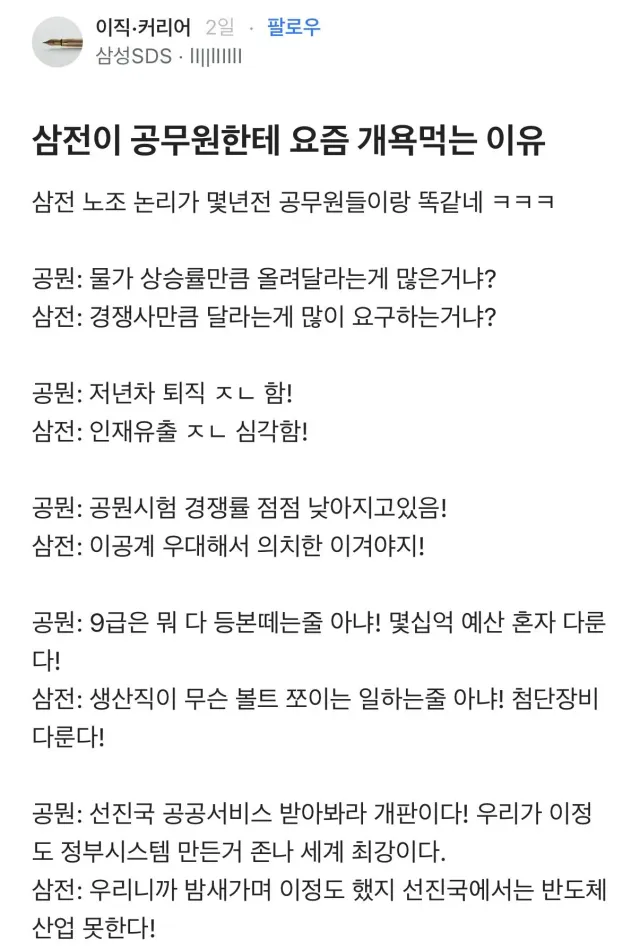 [유머이슈] 블라) 삼전이 공무원한테 요즘 개욕먹는 이유 작성자 Mini's 등록일 2026-04-30 22:06:25.0 조회수 6 2026-04-30 유머이슈~♡ 블라) 삼전이 공무원한테 요즘 개욕먹는 이유 마나토끼 폐쇄기념 씹덕들 난리났던 불법 번역넌 여진족의 한자가 뭔지 알아?.jpg부모보다 먼저 죽으면 왜 불효라고 하는지 조금 느꼈다 목록