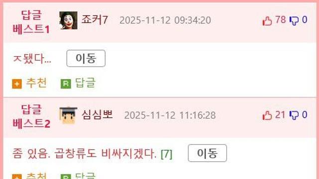 [유머이슈] 요즘 정말 심각하다는 국가 기밀 유출.gif 작성자 Mini's 등록일 2025-11-17 조회수 9 2025-11-17 유머이슈~♡ 요즘 정말 심각하다는 국가 기밀 유출.gif3분카레랑 쇠고기 카레 차이점핑크색 패딩 카리나T1 구마유시 누나 인스타 올라온 이야기인생이 바뀐다는 갓생 루틴..ㄷㄷ.mp4,,병무청이 불쾌하다고 삭제 요청한 만화 목록